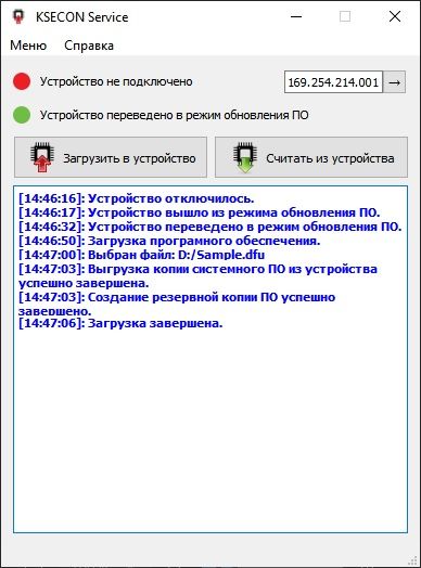 "Сервисное программное обеспечение KSECON Service" предоставляет удобный интерфейс для подключения к программируемому логическому контроллеру и загрузки/выгрузки системного программного обеспечения, Web интерфейса и прикладного программного обеспечения. При записи в программируемый логический контроллер программного обеспечения, KSECON Service автоматически создает резервные копии прежнего программного обеспечения устройства, что дает возможность вернуть ранее установленную версию ПО.